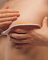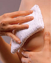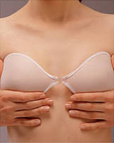 First and foremost, make sure your skin is clean and dry. Wash your breasts with mild soap and water to remove body oil and residue from the skin. Dab your skin gently with a soft towel. DO NOT USE any powders, oils, lotions or fragrances anywhere near your chest area prior to wearing a silicone bra.